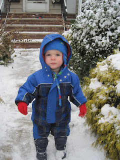 We have had an extremely mild winter so far, but last weekend there was finally a bit of snow. Ben wasn't sure about the way it stuck to his gloves, and spent a LOT of time trying to brush it off his snowboots. But he was amused by his parents having an extremely ineffectual snowball fight.